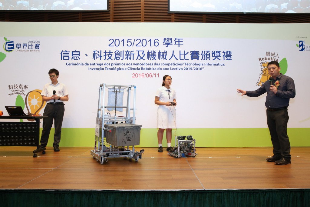 The 2015/16 Information Technology, Innovative Technology and Robotics Competition organized by the Macau Education and Youth Affairs Bureau had its awards ceremony on June 11th at the Macau Science Center.