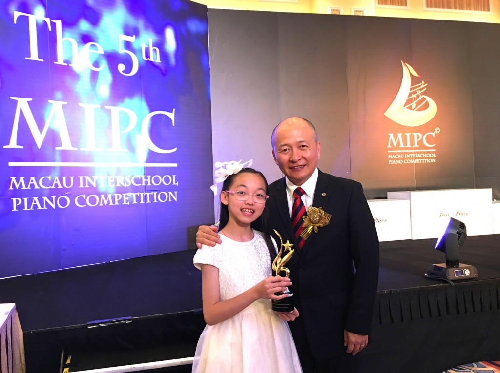 The awards ceremony was held in the Venetian Hotel on October 9. Vice-principal Dr. Keng Man Kuok was invited to be the master of ceremonies, and Primary 6 student Ms. Ning Ieong was invited to give a solo recital at the ceremony. Many congratulations to our award winners this year!