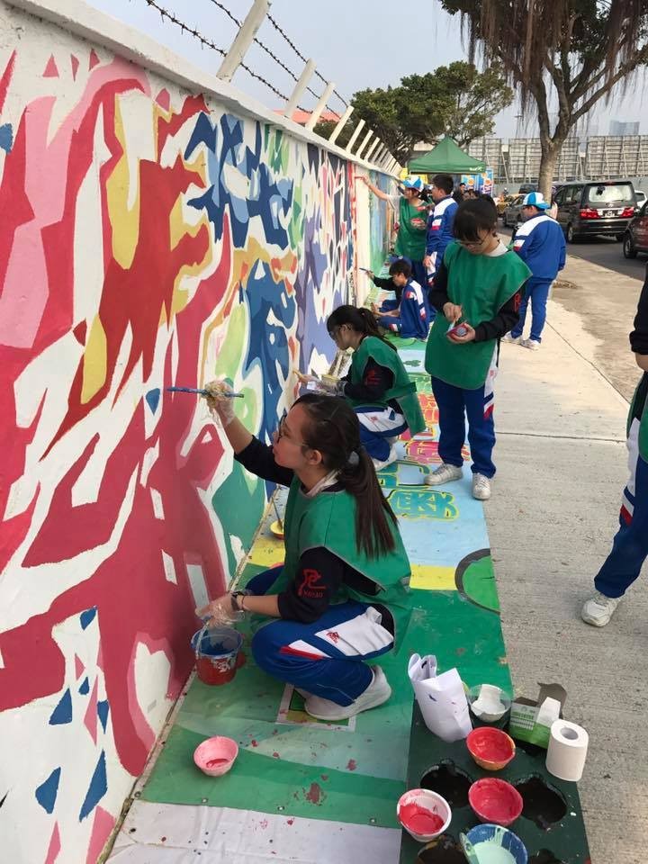 Pui Ching participated in the City Cleaning Initiative Mural Competition. Students from the Design Club put their award-winning work on animal protection on the exterior wall of the Macao Jockey Club on Avenida dos Jogos da Asia Oriental.