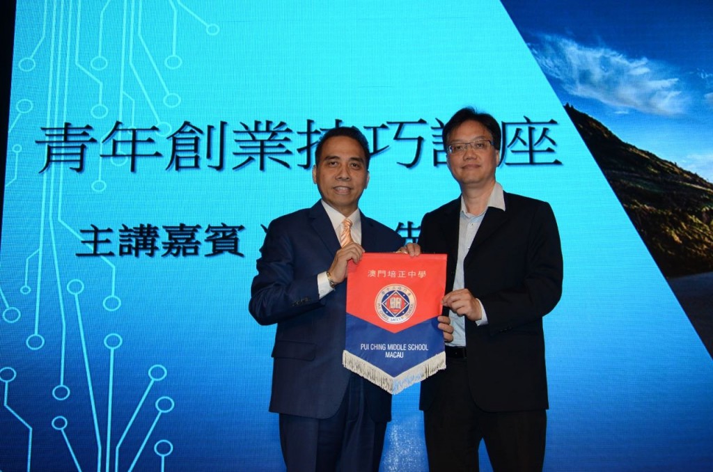 Pui Ching had the pleasure of the company of Mr. Kin Fu Fong, director-general of the Macao Association of Small and Medium-Sized Businesses. Mr. Fong gave a talk to Junior 3 and Senior 1 students on entrepreneurship this morning. During the talk, Mr. Fong not only discussed what is required of the entrepreneur in the preparatory stages, but also shared personal stories from young entrepreneurs in Macao.
