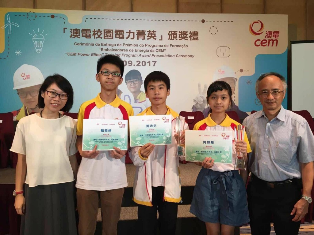 本校學生參與「澳電校園電力菁英」培訓計劃,當中三名獲頒發證書,而初三正班何穎彤獲頒最佳報告奬,初三望班周政浩獲頒優異表現奬。