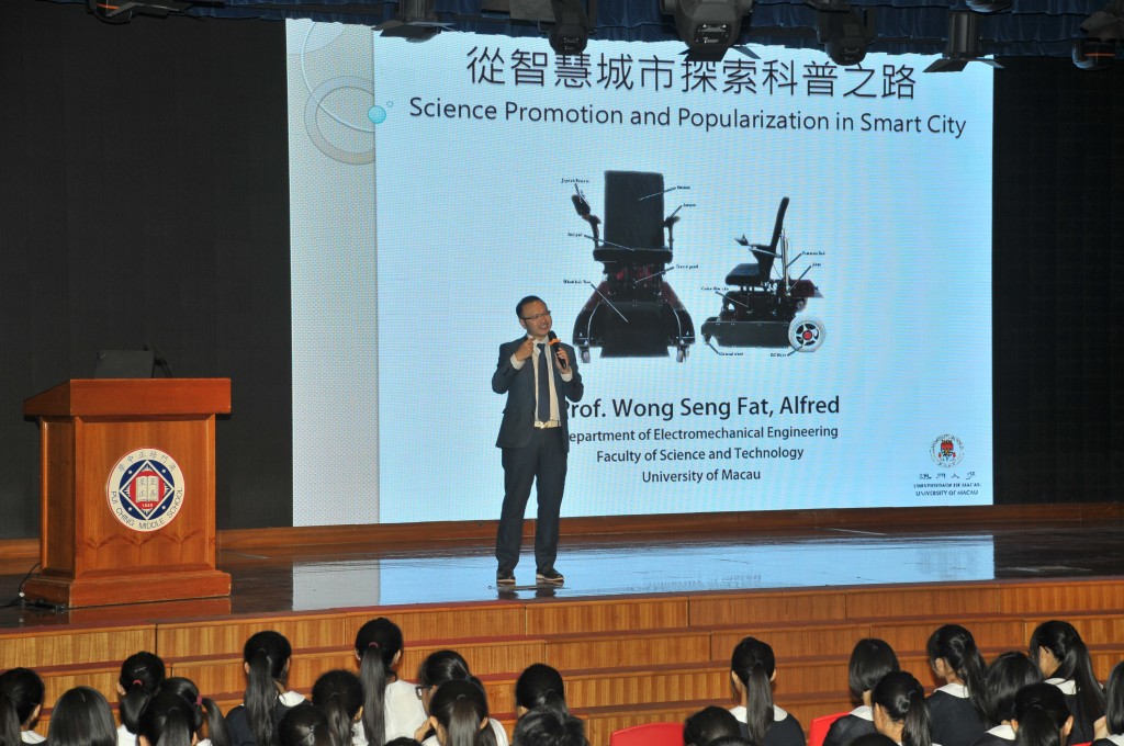 黃教授向高小至中學各級同學講述了澳門發展智慧城市的基本方向,以及無障礙社會的可行性,讓同學明白澳門未來的交通、旅遊、醫療等各方面都與智慧城市的建設息息相關。