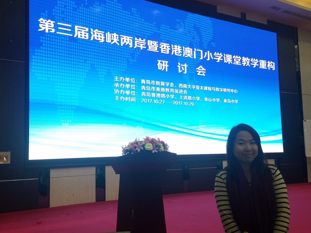 本校小學英文科邵燕兒老師於10月26日至30日前往青島,參加「第三屆海峽兩岸暨香港澳門小學課堂教學重構研討會」並作公開展示課。會上,與來自兩岸四地的老師就英語教學問題展開熱烈討論,達至交流目的。