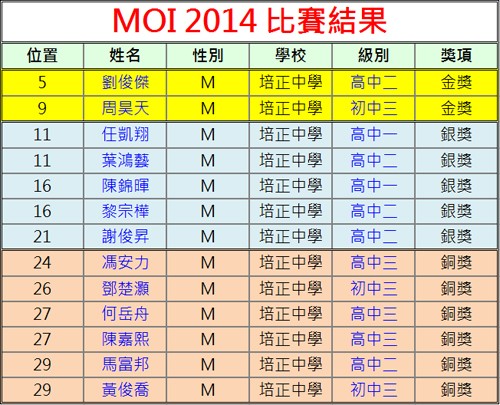 本校學生劉俊傑(高中二)及周昊天(初中三)分別以第5名及第9名取得全國青少年信息學奧林匹克競賽(CCF NOI2014)澳門隊代表資格。2014-05-20