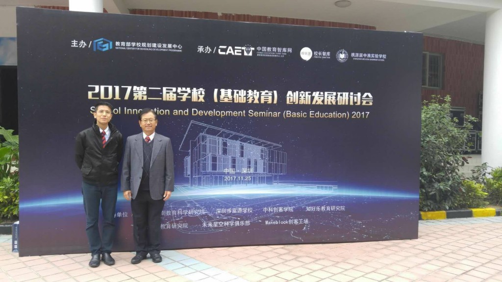 2017第二屆學校(基礎教育)創新發展研討會在深圳舉行,香港培正中學譚日旭校長、本校陳敬濂副校長獲邀在特聘專家講座上作分享,講題分別為“未來教育之課程構建",以及“未來學校之人才培養",向與會者展現港澳培正在未來教育上的方向和特色。