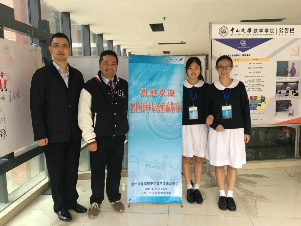 高三兩位女生畢業旅行回澳後,旋即在胡俊明老師帶領下啟程赴穗,參加第十屆丘成桐中學數學獎南部賽區,這是一個高水平的比賽。結果,楊紫慧、黄凱瀅這一組合,獲晉级丘獎總決賽!