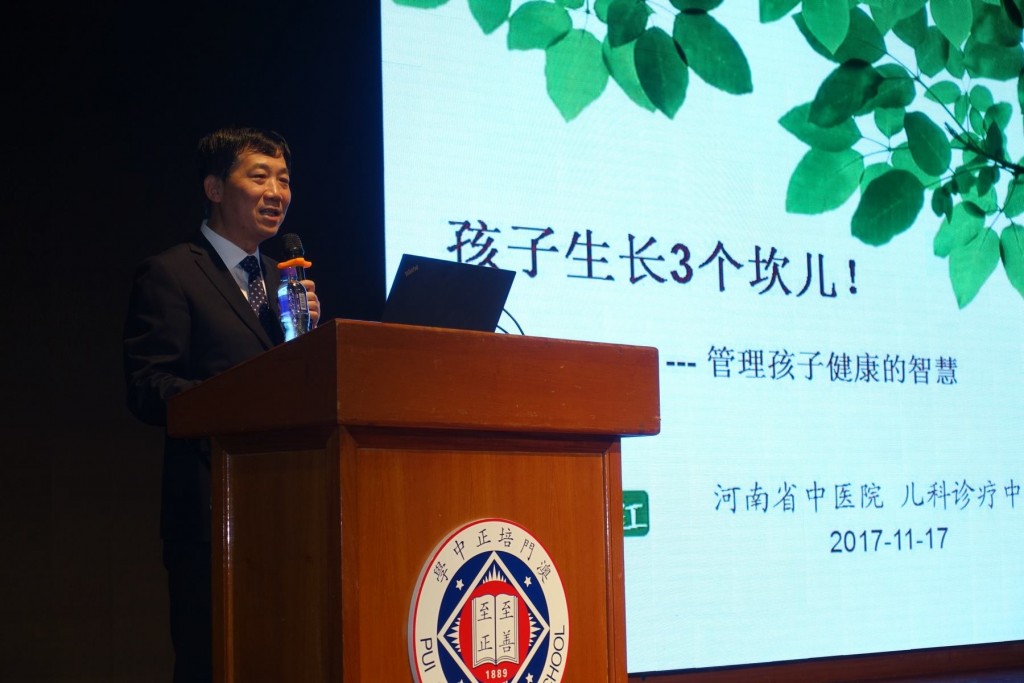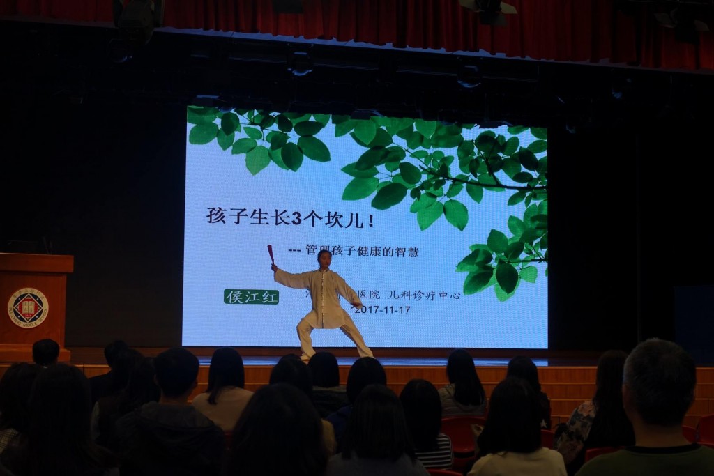 今晚,本校有幸邀請河南省中醫院、河南中藥大學第二附屬醫院兒科診療中心主任, 中醫兒科學科帶頭人,中醫兒科博士生導師,河南省名中醫,國醫健康管理中心主任,中醫養生學科帶頭人,中醫養生碩士生導師侯江紅教授到校分享講座。本次侯教授分享的題目是:孩子生長了三個坎兒!——管理孩子健康的智慧。講座開始前,先由牛穎護士長為大家表演一段太極扇。隨後,侯教授深入淺出地分享由懷孕到孩子成長之不同階段的養護心得,讓與會者了解如何保養孩子,令孩子們健康成長。最後,亦由牛護士長表演一段八段錦來結束是次講座。