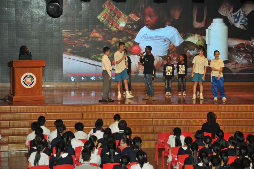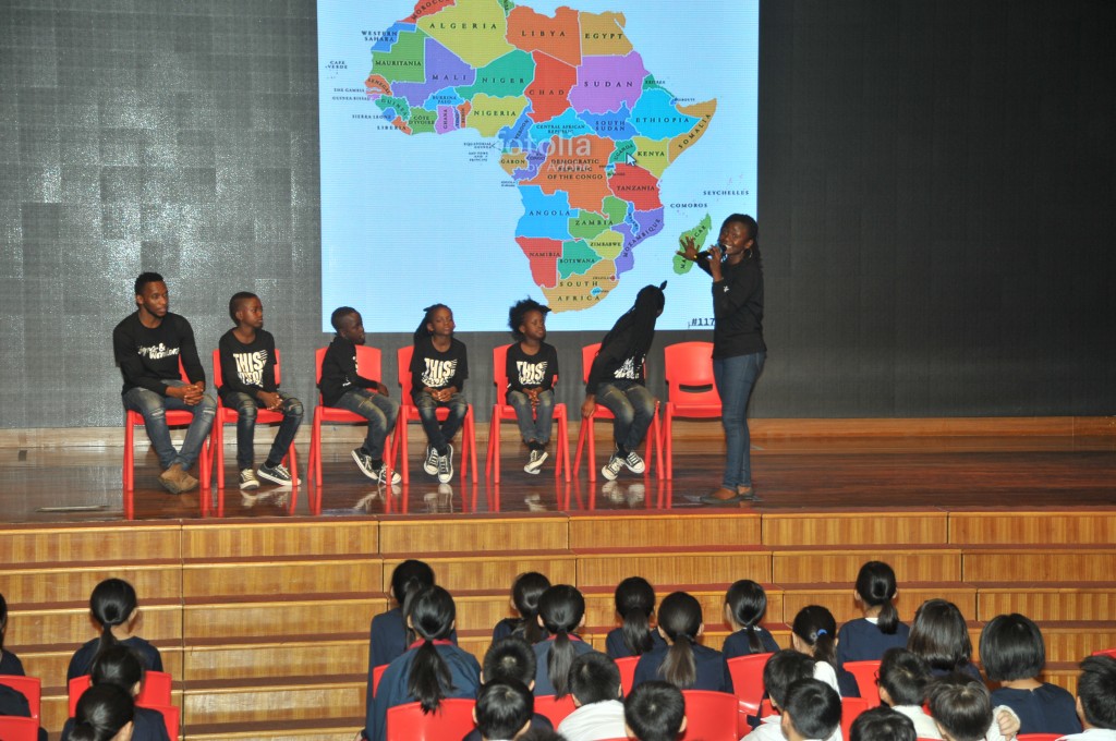 11月30日,非洲“WATOTO兒童合唱團”部分成員來校為小五至初二級同學舉行分享會,介紹非洲WATOTO組織、分享個人經歷並表演非洲歌舞,場面熱鬧。會後,WATOTO成員與本校小學英語培訓班同學一起上課,互相學習交流。