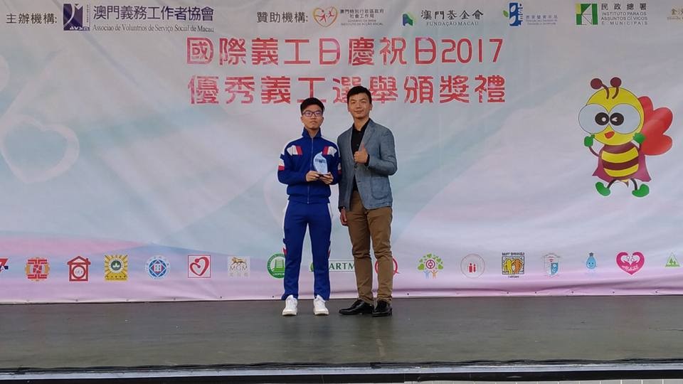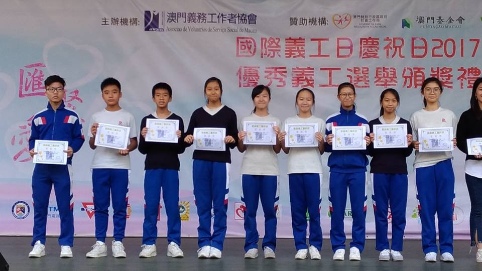 由澳門義務工作者協會主辦之2017優秀義工選舉頒獎禮於今天下午假黑沙環祐漢公園舉行,本校義工隊多位表現出色的隊員獲提名推薦參與,經過面試及義務經驗評分環節,多名成員獲獎,恭喜恭喜。以下為獲獎名單: