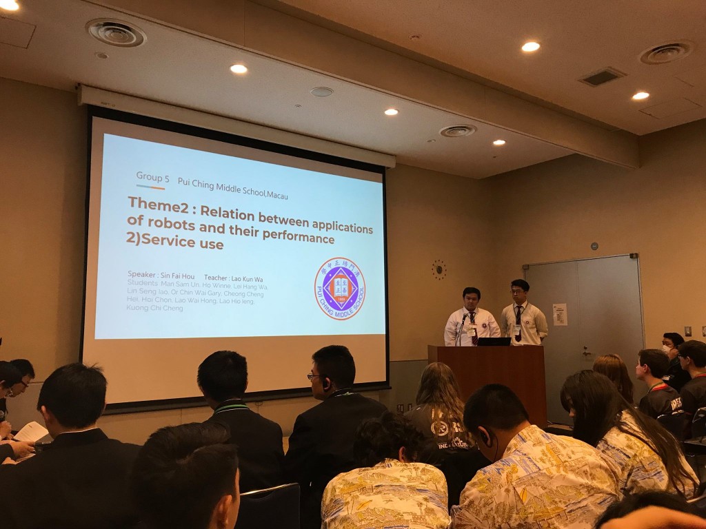 同時同學們亦獲日本機械人學會邀請參加大會主辦的國際高中學生機械人論譠,學生通過對於幾個機械人的學習主題,學習這幾個主題的不同領域機械人的原理、發展及應用,同時選擇其中一個主題在IREX展場進行調查,包括與技術人員的訪問,展品的探究、自己對展品的體驗及試用,對參觀者的訪問,不同產品比較分析等,然後根據調查收集的資料,進行資料整理及討論,撰寫學習主題的題告及制成PPT,並將報告分享給參加論譠的不同國家同學,席間同學們可以與不同國家的同學交流了機械人技術及文化。