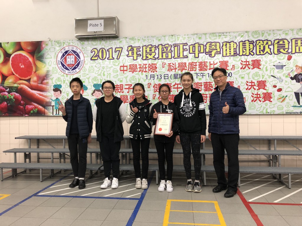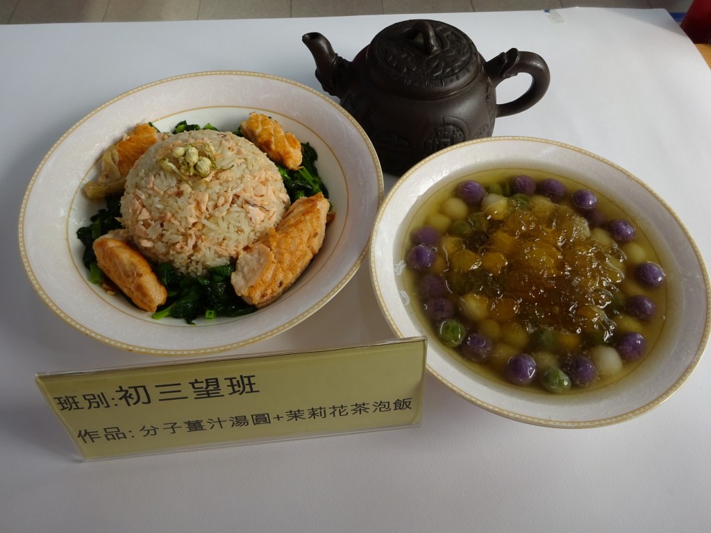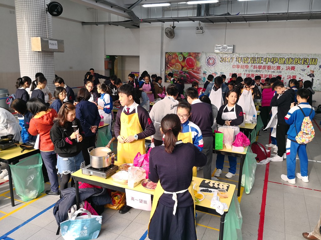 本校健康飲食周系列活動之「中學班際科學廚藝比賽」今日下午舉行,初一望班的菜譜「衝出科學一帶一路」,憑著美味的南瓜意大利飯、紫薯球及運用液態氮製作的雪糕,勇奪全場總冠軍。初三望以「分子薑汁湯圓+苿莉花茶泡飯」奪得最美味大獎。高二愛獲最佳營養大獎,高三信獲最佳創意大獎,高一信獲最佳造型大奬。