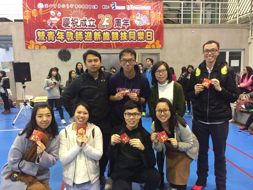 澳門中華教育會青年委員會慶祝成立23周年暨青年教師迎新歲競技同樂日今午舉行,本校教職員會組隊參與,獲得分項冠軍,喜氣洋洋。