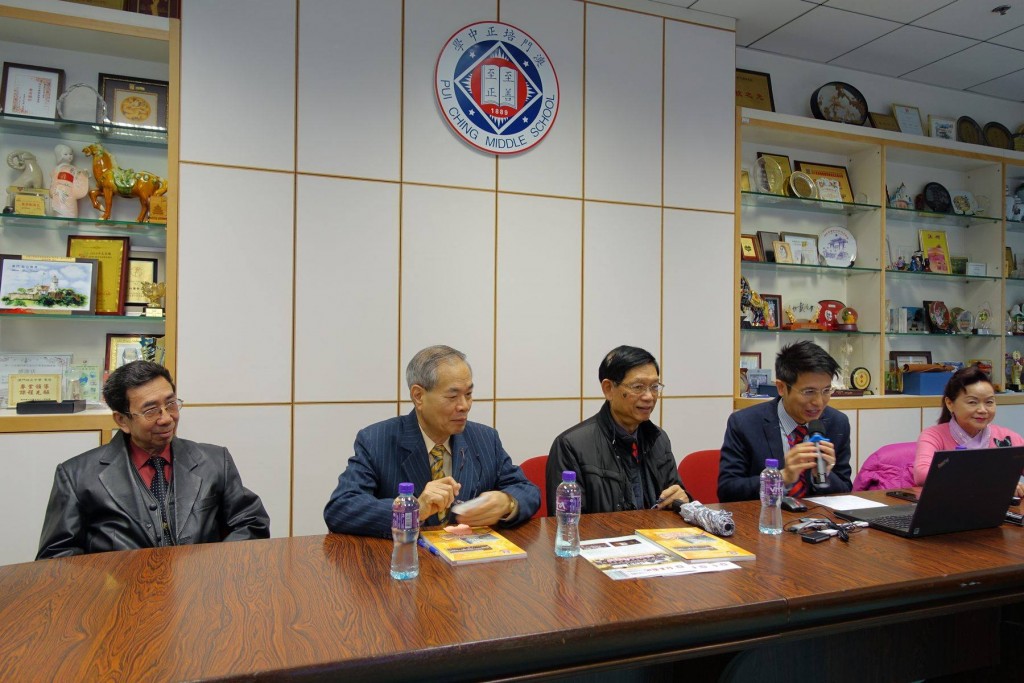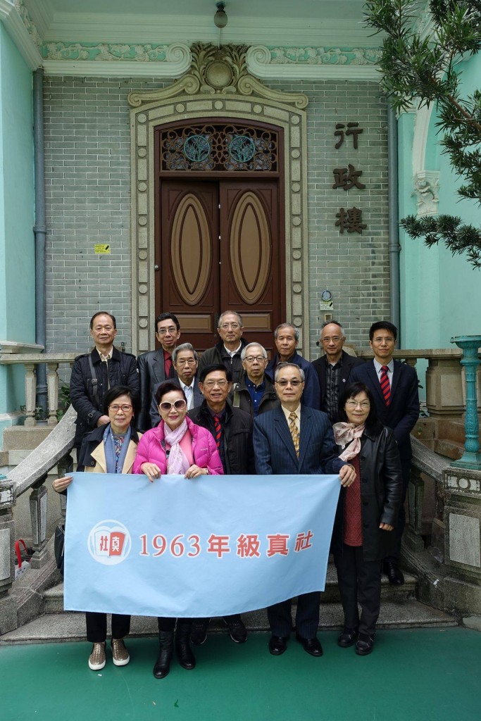 離校55周年的真社校友今早歸省母校,陳敬濂副校長向校友們介紹學校近況,並陪同參觀各項設施。校友們對母校的發展及學弟妹取得的成績深感欣慰。在午宴上,真社校友向母校致送獎學金,由陳志誠主任接受。