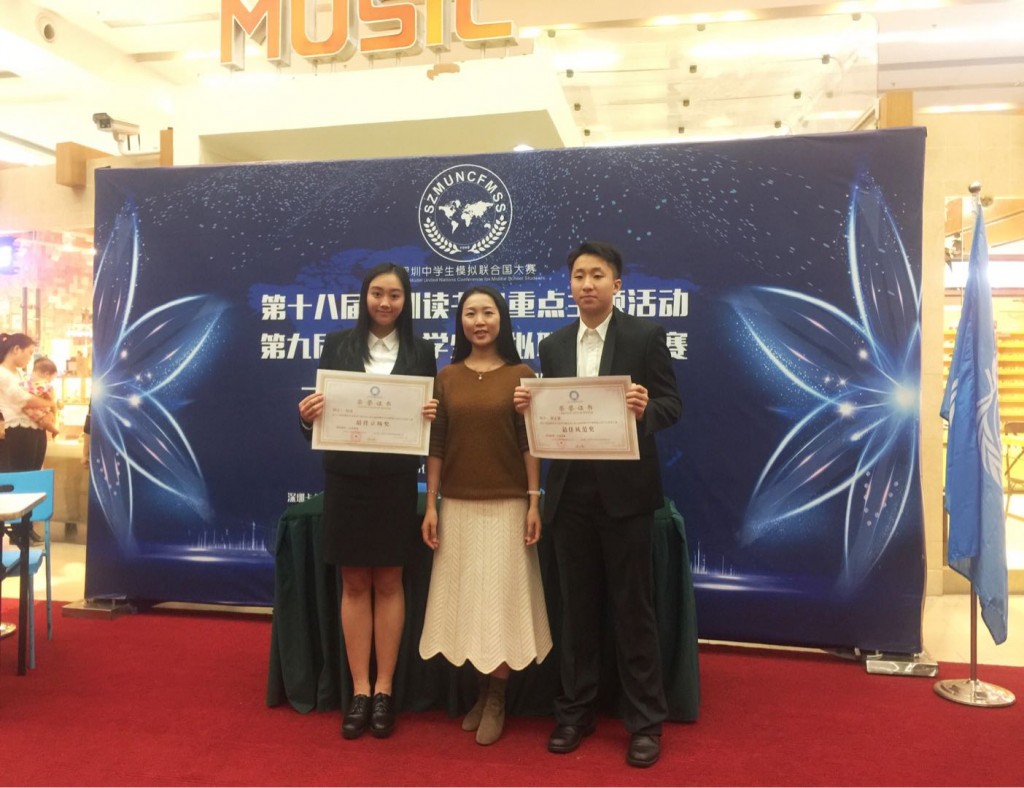 本校中學同學何正灝和楊茗在澳門賽區的初賽中,獲選成為澳門的二強選手,參加第九屆深圳中學生模擬聯合國大會英語大賽暨粵港澳地區決賽,與深圳市三千多名中學生中選拔出來的三強選手,以及從香港二十多所中學裡選拔出來的二強選手一起,分別代表不同的國家,就「中國啟動『一帶一路』經濟政策的最大挑戰」這一議題,以流利的英語進行公開演說,闡述扮演國家的觀點與立場,並與友好國家協調溝通、解決衝突。此次比賽的語言為英文,具挑戰性,而來自深圳和香港的選手實力也非常強勁。經充分準備,本校兩位同學的表現獲評委一眾好評,獲頒「最佳風範獎」及「最佳立場獎」。