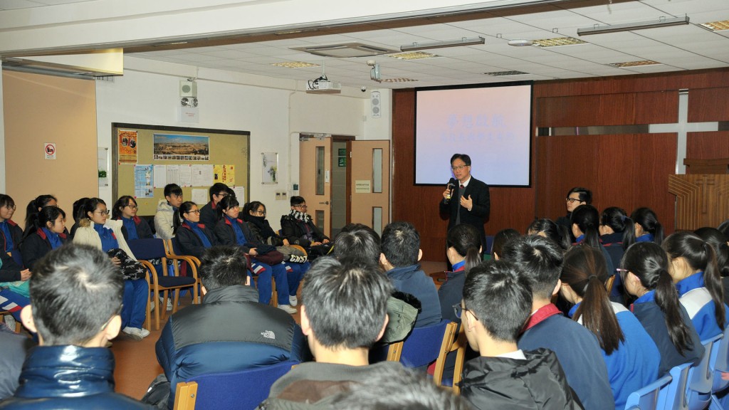 是次分享會,也邀請了正在北京大學攻讀碩士的校友梁子豪回校,與學弟學妹分享其求學的經驗和心得。他表示,內地學習風氣濃厚,學生求學認真,短短一年半的時光已讓其眼界大開,獲益匪淺。他特別提到,不要在應該拼搏的時候選擇安逸,否則只會「老大徒傷悲」,勸勉一眾學弟妹要緊握機遇,讓夢想啟航。