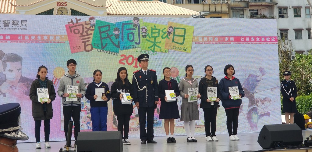治安警察局《警察故事3》繪畫創作比賽,勞詠芯同學(右四)獲亞軍。頒獎禮今早於「警民同樂日」揭幕式上進行。