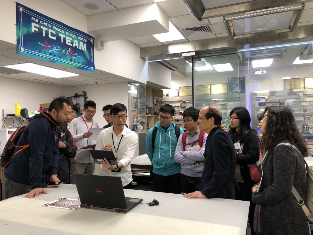 滙基書院(東九龍)鄭建徳校長和劉華副校長於今日上午帶同多位該校STEM課程的同工參訪我校,受到高錦輝校長、郭敬文副校長丶陳敬濂副校長、劉冠華主任、閔好年老師等熱情接待,兩校人員在開展STEM、ICT、機械人活動等範疇方面作了深入的交流。
