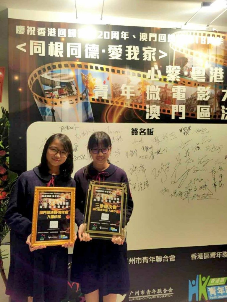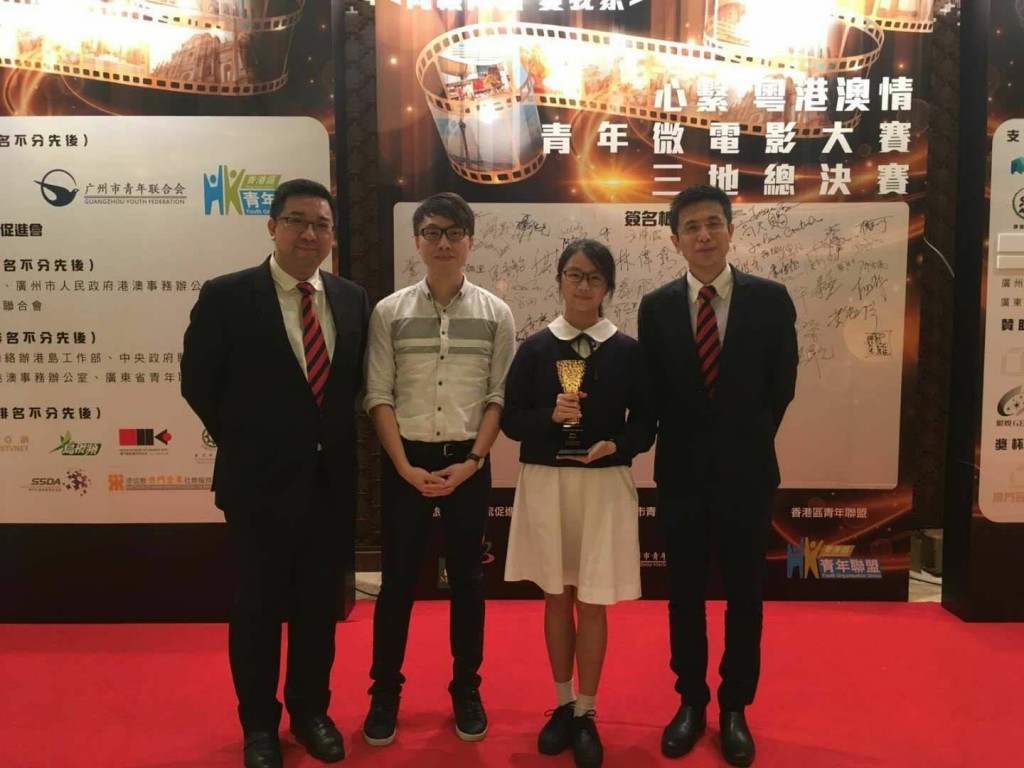 由澳門旅遊文化交流促進會、廣州市青年聯合會、香港區青年聯盟合辦的「心繫·粵港澳情-青年微電影大賽-三地總決賽」今晚於氹仔悅榕莊宴會廳舉行。是次比賽匯集粵港澳三地精英,參賽作品約450部,決賽晚宴超過300人出席。培正校園電視台學生初二望朱雅祁、林芷愉,在黃耀鋒老師的指導下,憑短片「尋‧角落」,於眾多高質素作品中突圍而出,勇奪青年組全場季軍-銅蓮花杯。