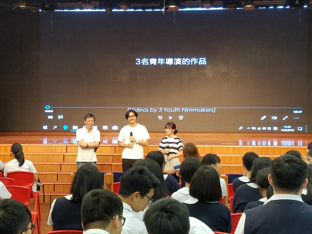 本校參與了文化局轄下戀愛‧電影館的「駐場電影人計劃」,安排了高一全級學生在5月14日下午欣賞紀錄片《明天我》。該電影館節目及市場推廣部主管范傑揮、營運總監黃若瑩及工作人員,該片其中一位學生導演英毅,以及香港導演黃修平先生到校,與學生分享影片內容,交流想法,氣氛熱烈。隨後,黃導演接受本校校園電視台訪問,並了解同學們日常參與拍攝和正課學習的情況,讚賞本校中文學以致用課程;他們在參觀校園中,感受本校文化。