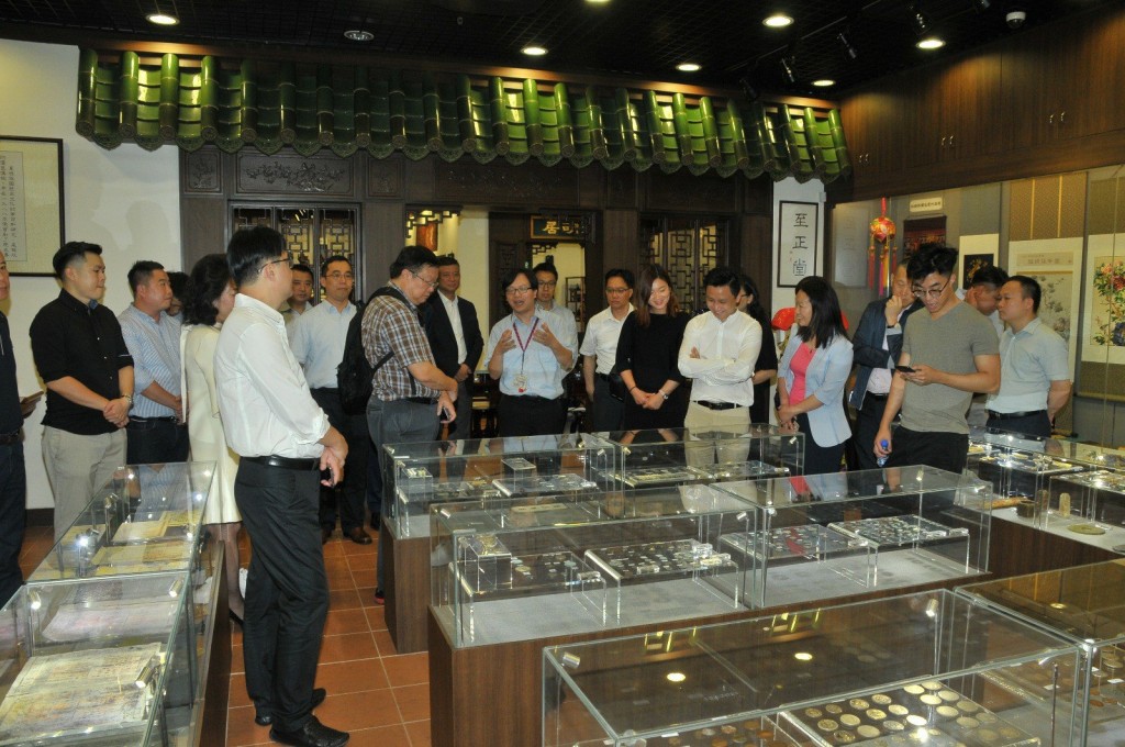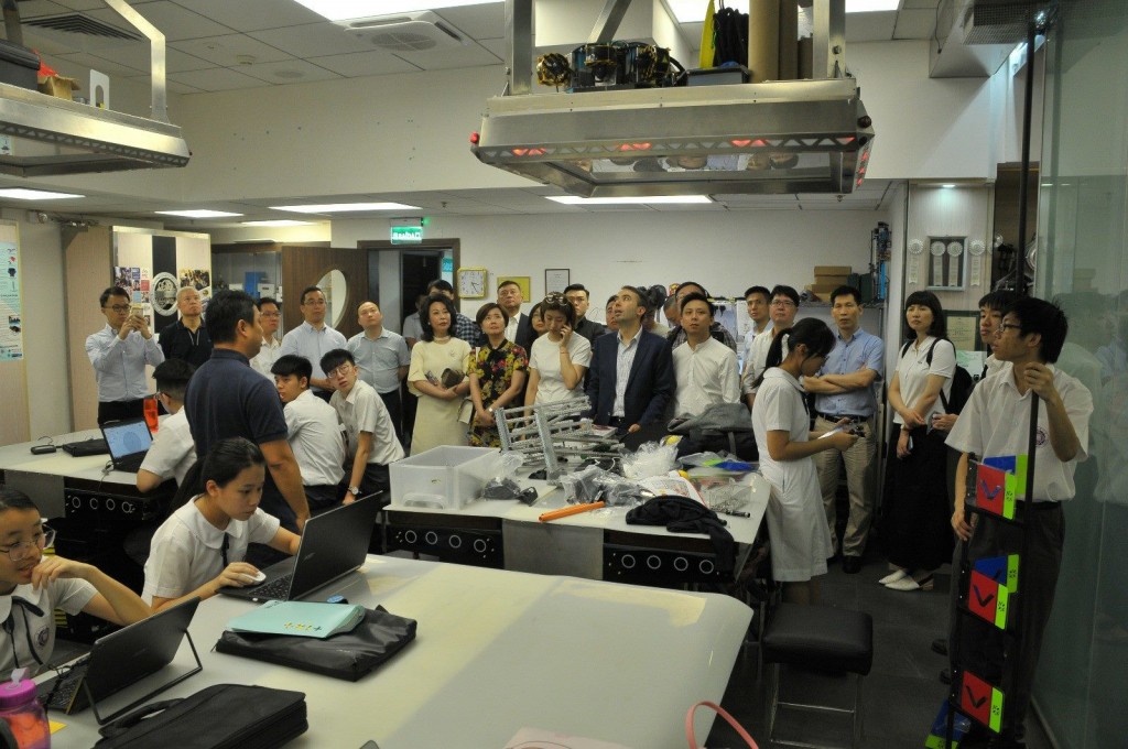 嘉賓一邊欣賞文化館收藏和了解實驗室的先進設備,一邊視察學生上課的實況,從中了解本校發展創新科技和傳承中華文化的情況。