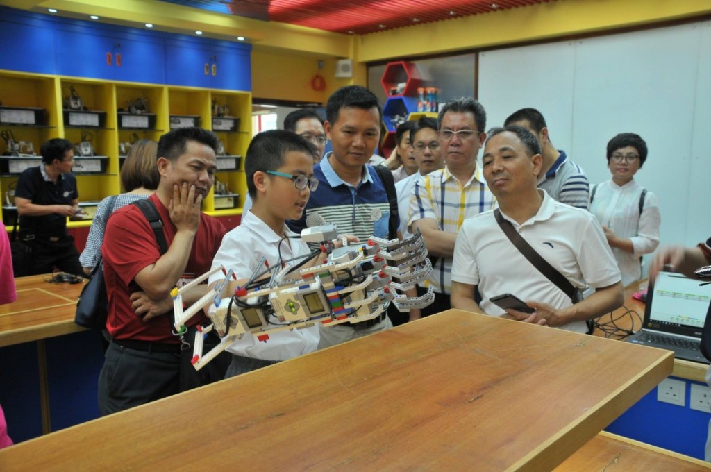 今日下午,在團長廣東省科學技術協會黃善輝副巡視員的帶領下,一行近三十位來自粵港澳青少年科技創新合作交流活動的專家學者蒞臨本校參觀交流,受本校熱情接待。來賓先後參觀了本校的樂高教育STEM實驗室、創新科教館和中華文化館,並展開座談交流。