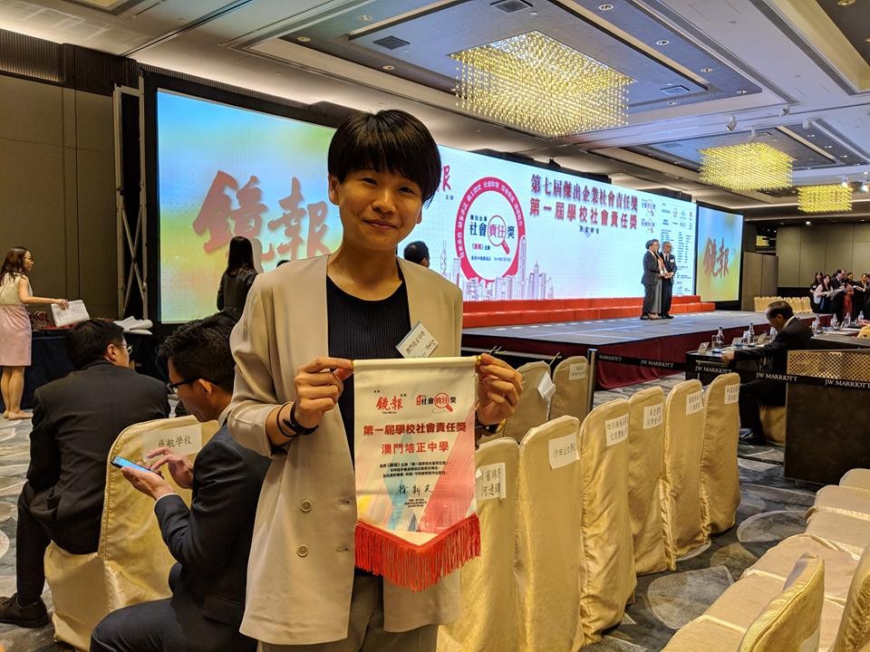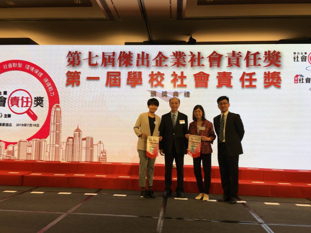 由鏡報主辦的第七屆傑出企業社會責任獎暨第一屆學校社會責任獎頒獎禮今早在港舉行,本校獲頒傑出學校社會責任獎(中學)。校長助理黃健老師代表領獎。