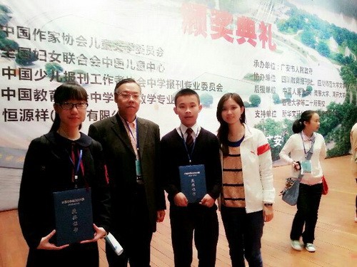在四川舉行的中國中學生作文大賽總決賽, 陳毅彬和陳心悅均獲全國一等獎。