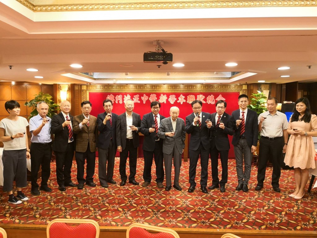 錦輝等祝酒,在場嘉賓、教職員工、榮休老師為校務發展舉