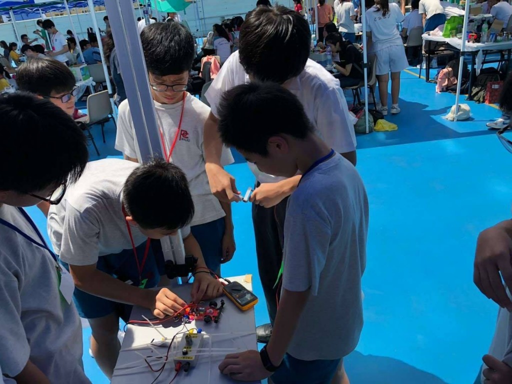 我校師生於昨日參加由澳門電力股份有限公司主辦,澳門工會聯合總會、澳門青年聯合會、澳門中華學生聯合總會協辦的“第六屆澳電太陽能及電容模型車比賽”,今次比賽吸引全澳25間中學,超過600名師生積極參與。我校初二高德其、陳浩徽、李柏僑、陳烈埼、蘇進翀同學順利通過預賽、複賽,並憑藉在決賽中穩定的發揮取得電容模型車比賽季軍,將以三甲資格代表澳門出戰香港的“二○一八應用可再生能源設計暨競技大賽”。