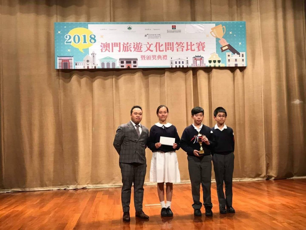 2018 澳門旅遊文化問答比賽,由張海珊老師指導,初二信(自然風格隊)獲亞軍,初一信望(哈哈哈哈哈隊)獲季軍。