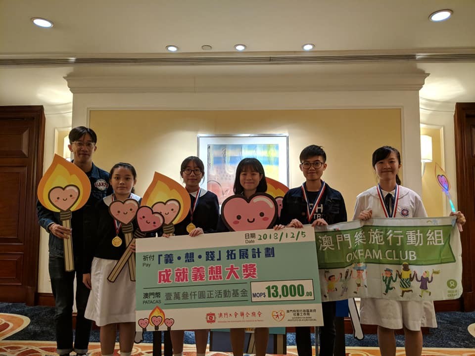 義工隊樂施行動組參與了由澳門工會聯合總會、澳門特區政府社會工作局舉辦的「義.想.踐」拓展計劃,透過撰寫活動計劃書、向評審演示行動理念和內容,評審將以行動的發展性、可塑性和可達性作為評審準則,以決定是否資助有關活動的開展。