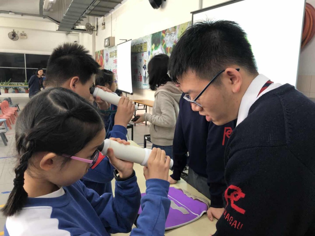 本年度健康飲食周以「飲食健康,保護視力」為主題。今日午間,在B座雨天操場舉行了護眼講座,由山頂醫院陸美嬋醫生及林嘉明醫生介紹近視的防治,教育同學愛護眼睛。講座後,莫鎧駿、黃昊泓同學利用他們研發的「主覺驗光儀」,為小學生測試視力。