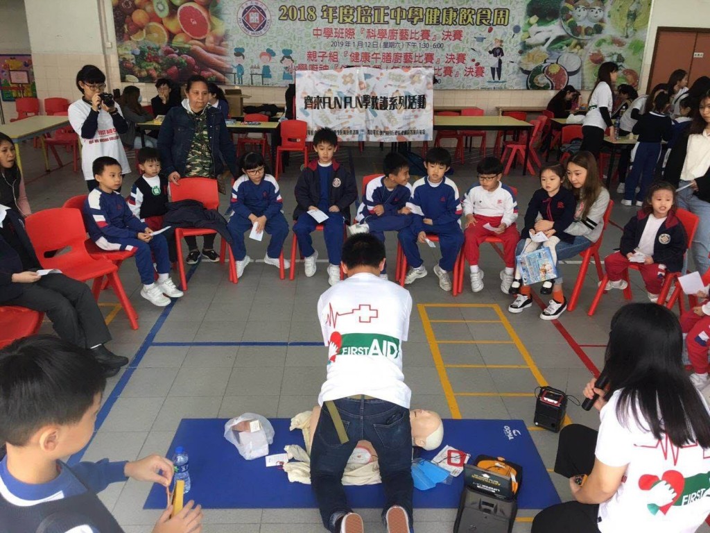 澳門鏡湖護理學院學生會救護隊於今天中午到校舉辦 「齊齊Fun Fun學救護」活動。透過攤位遊戲與情景演示,讓同學學習簡易的護理與急救處理方法。