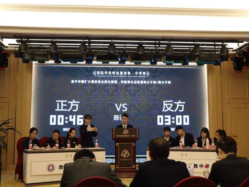 本校辯論隊根據「當今中國擴大高校自主招生規模,對教育長遠發展利大於弊」的辯題輪流擔任正反兩方,分別與上海市實驗中學、馬來西亞八打靈公教中學的辯論隊展開思辯交鋒。是次比賽讓學生獲益良多,累積了不少華語辯論的經驗,有助提升隊伍在辯論中的攻防能力。