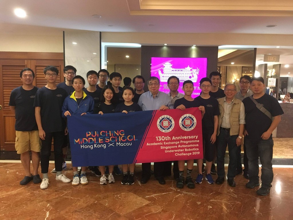 培正創校130周年,港澳兩地培正師生學術交流,相約新加坡,參加自動水底機械人挑戰賽,獲當地培正同學會邀請歡聚。