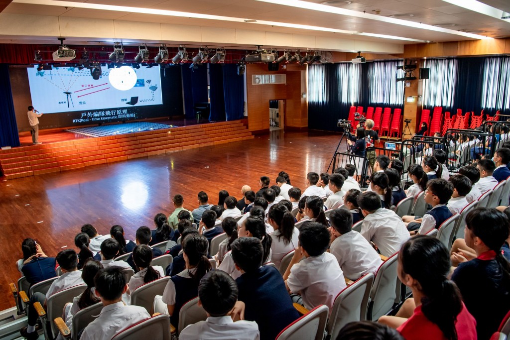 4月11日上午,無人機徐徐在培正中學體育館升起,精密、細緻、變化萬千的地毯式表演,讓一眾小六同學及設科學生目不轉睛。表演過後,新如意科技有限公司(以下稱新如意)的代表向同學仔細介紹了無人機的飛行原理,機身的基本結構以及操作方式。同時指出程式設計是無人機戶外編隊飛行的靈魂,如何透過精密的計算進行定位和控制是這項表演的難度。
