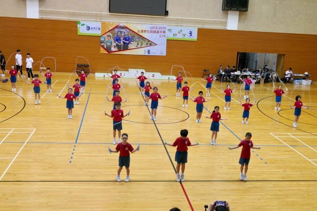 由教育暨青年局及中國澳門跳繩總會合辦的全澳學生跳繩嘉年華於今日上、下午在中葡職業技術學校體育館舉行。我校有27位小二至小五級的同學組隊參加了10人15秒速度跳接力賽、5人彩虹繩、10人走8字繩及第一套花式跳繩操四個項目的比賽。上下午的賽事,家長們都到場支持鼓勵子女的參賽。全隊同學們賽前認真練習,賽場上團結合作,互相鼓勵,賽出了水平。第一套跳繩操以72分的好成績獲得小學組第四名奬杯。