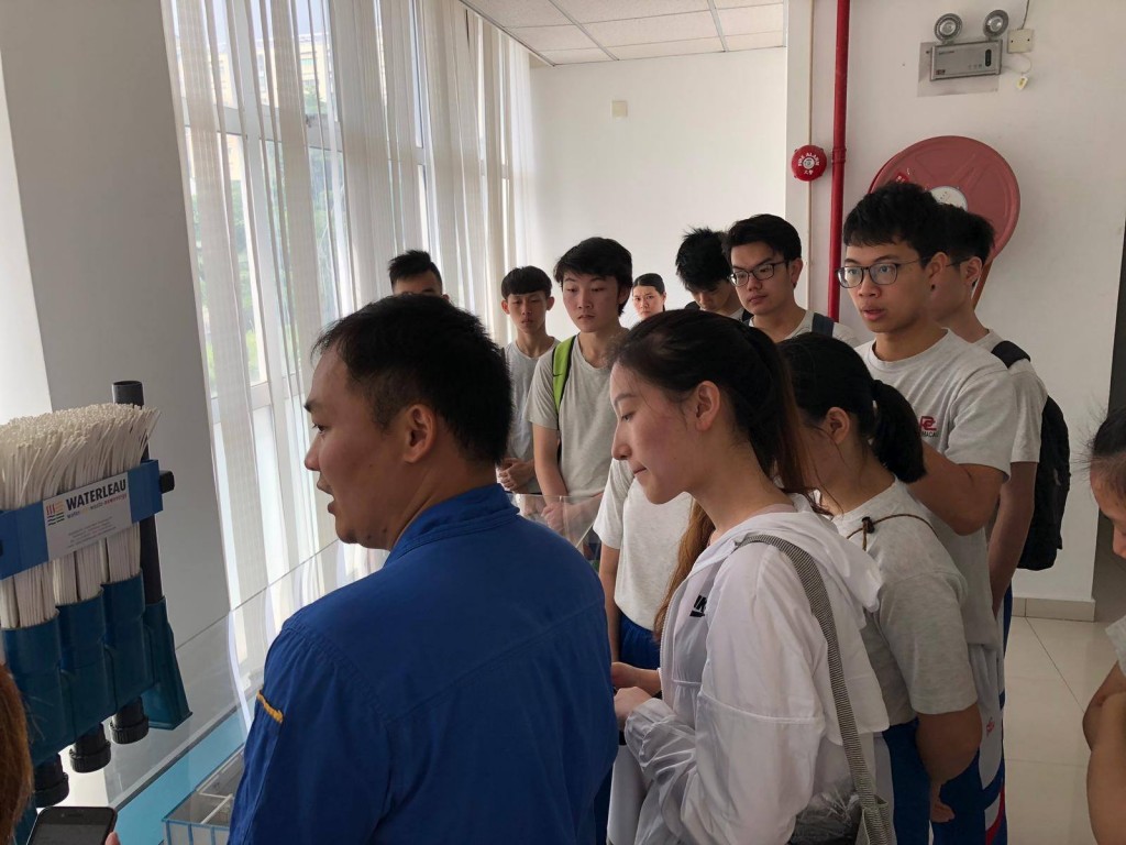 據工作人員介紹,該污水處理站主要使用物理及生物方法去除污水中的污染物。經過濾、脫脂等預處理後的污水進入曝氣池進行生物淨化,並通過生物膜進行進一步過濾,經處理後的水將排入水體或作工業或農業使用。參觀期間,學生積極向工作人員發問,力求對現今水系生態所面臨的危機和挑戰以及應對方法有更深入的認識。