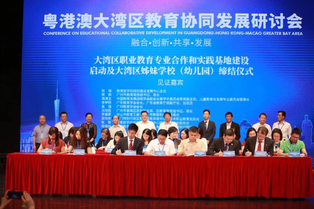 粵港澳大灣區教育協同發展研討會於6月29日在廣州舉行,同場設有大灣區姊妹學校締結儀式。儀式在教育部學校規劃建設發展中心主任陳鋒,廣州市教育局黨組書記、局長樊群,澳門教青局中學暨技術職業教育處處長梁怡安等見證下進行,本校敬濂副校長代表出席,並與廣東仲元中學(廣東歷史名校,中國百強中學、廣東省首批國家級示範性普通高中)簽署合作意願書,締結為姐妹學校。此外,陳副校長在研討會上亦分享本校與大灣區的教育交流情況。