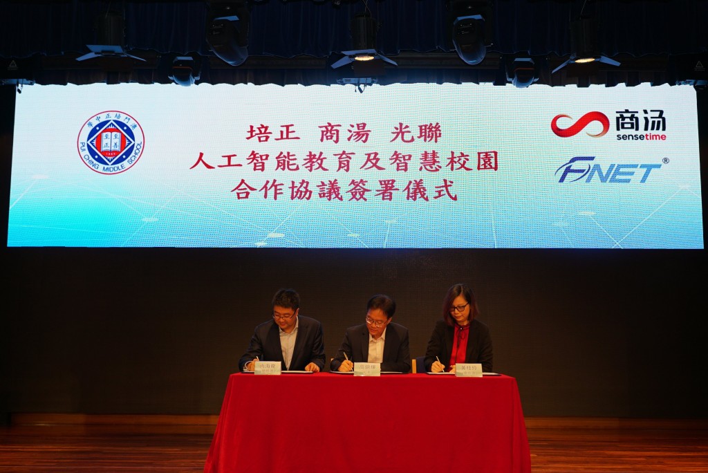 是次協議簽署儀式於今天上午十時在本校禮堂舉行,由高錦輝校長與商湯尚海龍總經理及光聯世紀黃桂玲總經理共同簽署,標誌三方合作正式啟動。本校副校長郭敬文、陳敬濂,商湯科技經理鄧彥恒,光聯世紀董事長黃書展,卓比科技總經理黃永儉,駿榮國際學校張植煒博士等嘉賓出席見證。