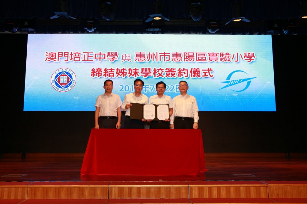 因科技教育結緣,以共同發展粵港澳大灣區科技教育為宏願,澳門培正中學與惠州市惠陽區實驗小學,於七月二十二日下午在培正禮堂舉行締結姊妹學校簽約儀式。