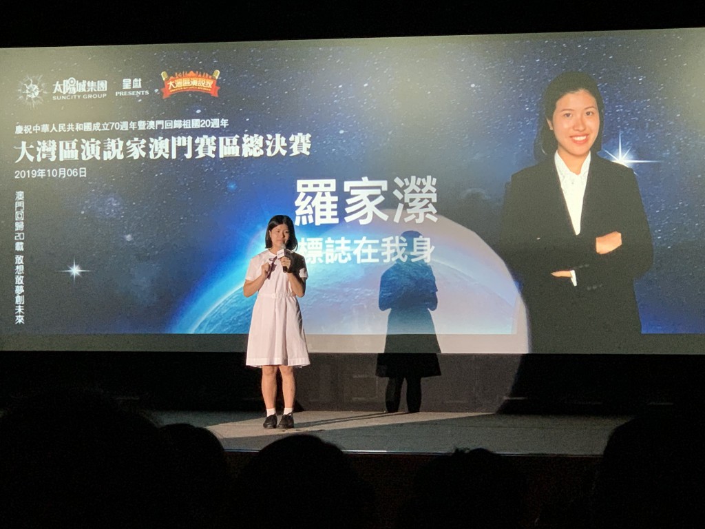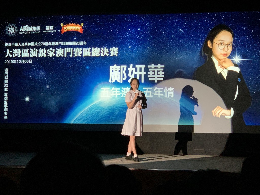由澳門我是演講家協會、香港聯合出版集團、紫荊雜誌社及廣東新勵成教育股份有限公司主辦之大灣區演說家澳門區總決賽,今天下午假科技大學禮堂舉行,本校羅家瀠、鄺妍華、陶昶,成為進入總決賽青年組最後八強,他們出色表現獲評委的肯定,他們將於11月2日參加大灣區演說家總決賽,與來自大灣區的一百多位演說精英一同較量。本校獲主辦單位頒發最積極參與團體獎。