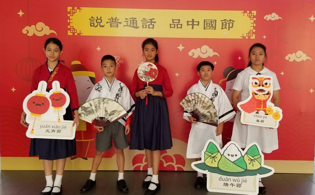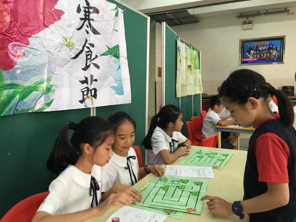 小學中文科在本周舉行「說普通話,品中國節」為主題的「普通話周」活動。活動旨在讓同學們從遊戲中認識我國傳統節日文化,了解更多民間習俗,同時在遊戲中獲得更多練說普通話的實踐機會。該活動全程由小六級同學擔任工作人員,生動有趣的攤位遊戲,即影即有漢服拍照體驗,漢語知識大使的宣傳講解,無一不吸引着同學們,不少家長亦前來圍觀。
