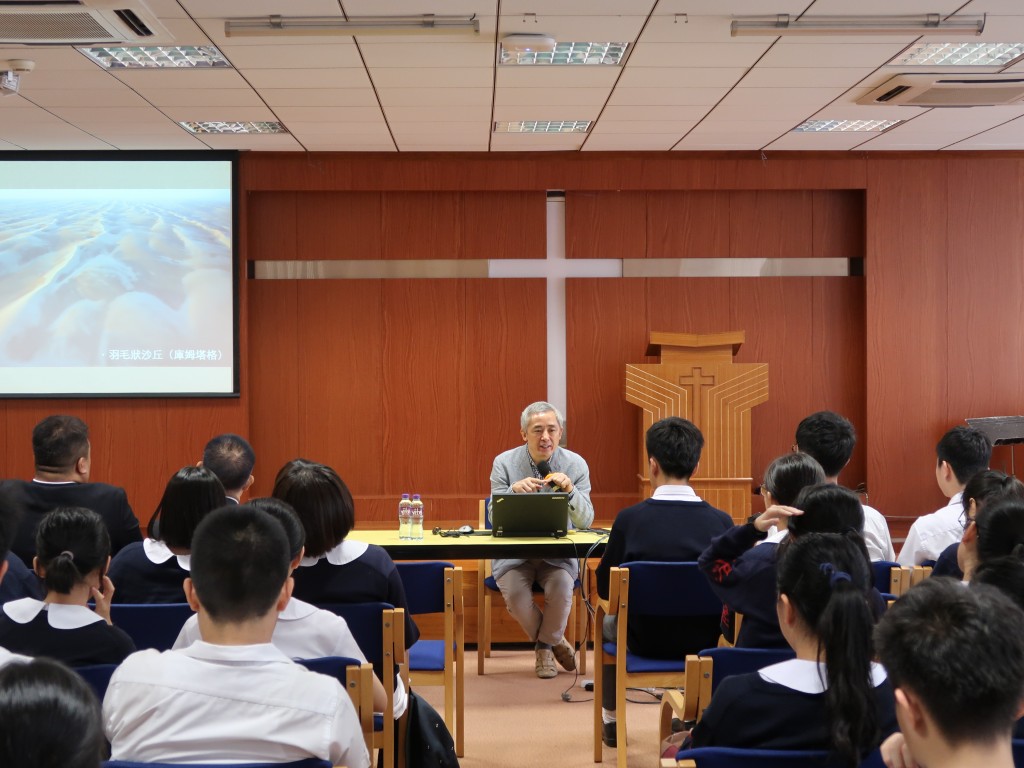 盧琦所長長期從事荒漠化防治、乾旱區生態系統管理、宏觀戰略與政策等方面的研究。是次講座,他以「荒漠有功勞 服務價更高」為題,與本校高一級同學探討生態環境中的難題──荒漠,並講述荒漠的生態功能與服務價值。