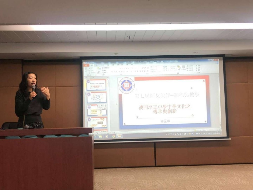 本校中學中文科主任麥芷琪老師獲中華教育會邀請擔任「第七屆師友伙伴・攜手共進」計劃負責導師,此計劃以經驗老師帶領青年老師,促進青年老師專業成長。麥芷琪老師今晚以「澳門培正中學中華文化之傳統與創新」主題分享教學理論與創新方法,並讓青年老師透過教案設計思考如何開展中華文化課程。