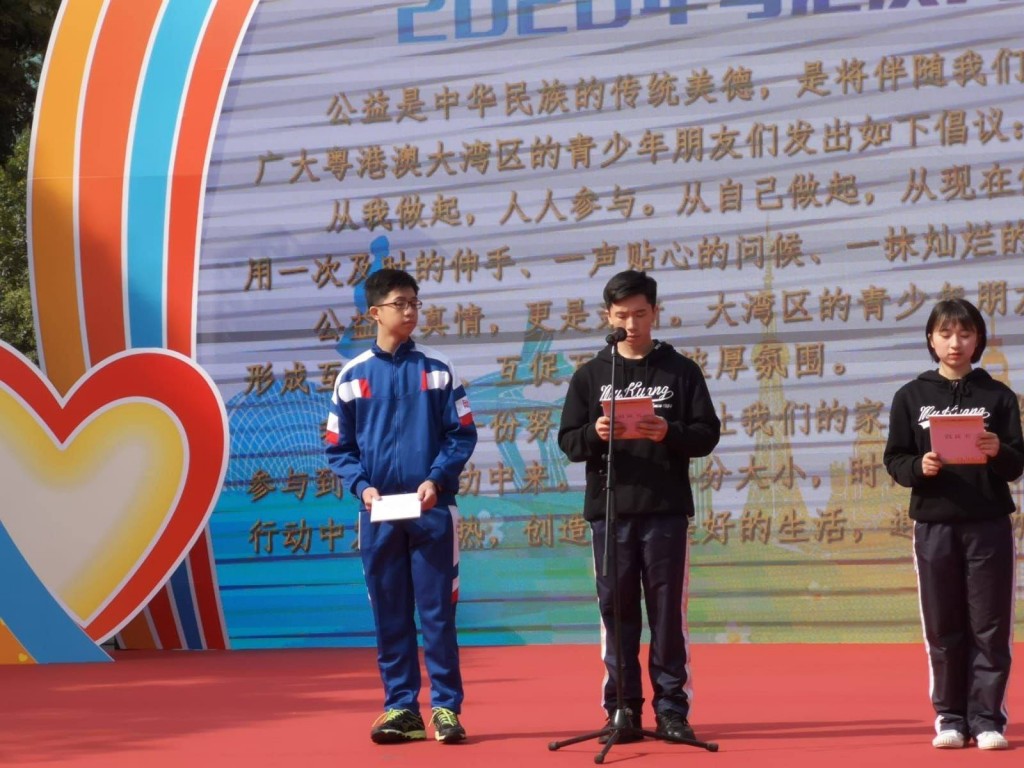 在18日早上的開幕儀式上,劉皓弘同學更成為澳門代表之一,在台上宣讀2020年粵港澳大灣區青少年公益年會倡議書。三天活動中,同學除了對中山的公益事業有初步認識外,當天下午還和中山紀念中學的同學進行交流,晚上參加了中山電視台有關公益活動的現場直播節目。