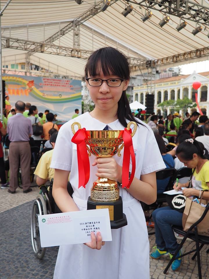 此外,澳門中西醫學週標語設計比賽中,本校高一級盧偉健同學、黃子榮同學,分別榮獲冠軍及季軍;優異獎是由高二級陳嘉欣同學,高一級陳穎姿同學、黃柏曦同學,初三級吳啟哲同學,初二級梁凱瑤同學獲得。