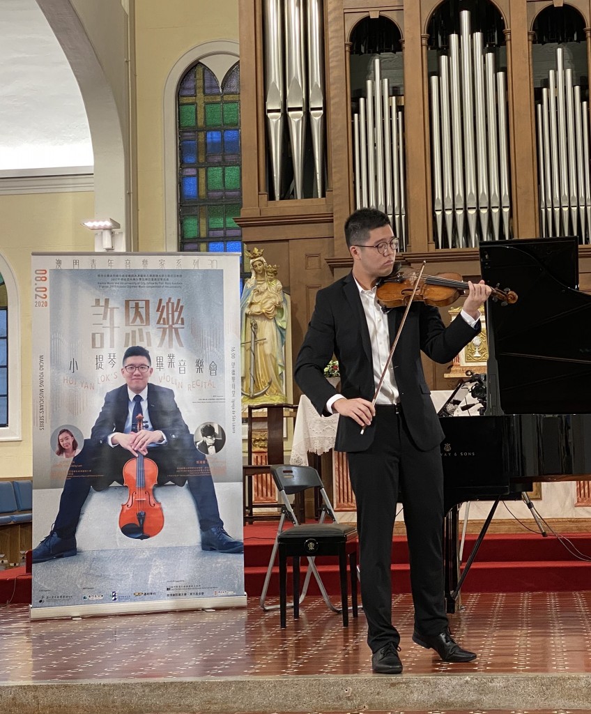 本校校友許恩樂小提琴畢業音樂會,今天下午於望德聖母堂舉行。許恩樂校友就讀於奧地利維也納音樂與表演藝術大學,跟隨名師古斯尼亞教授。同場演出的還有周清嵐校友。