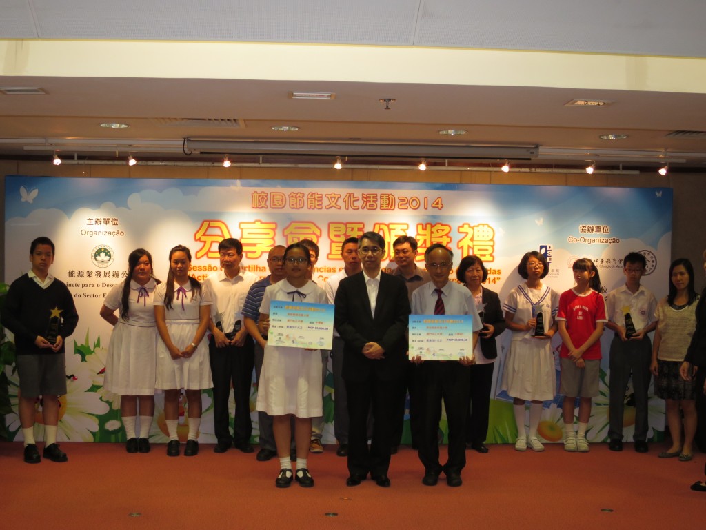 我校於"校園節能文化活動2014"比賽中,同時獲得中、小學最高榮譽節能模範校園大奬、節能校園綜合奬金奬及能源管理及設施改善奬 ; 沈世傑老師、陳少婷老師及學生開展之太陽灶探究活動獲得科普活動奬 ; 沈世傑老師、閔好年老師獲得能源教學活動奬 ; 小六正班李希賢同學獲得其他類作品奬。