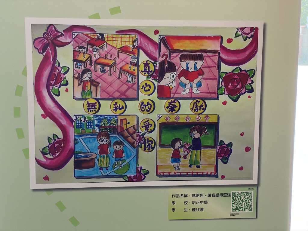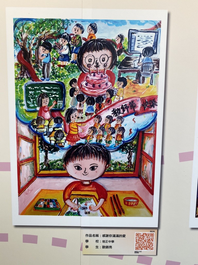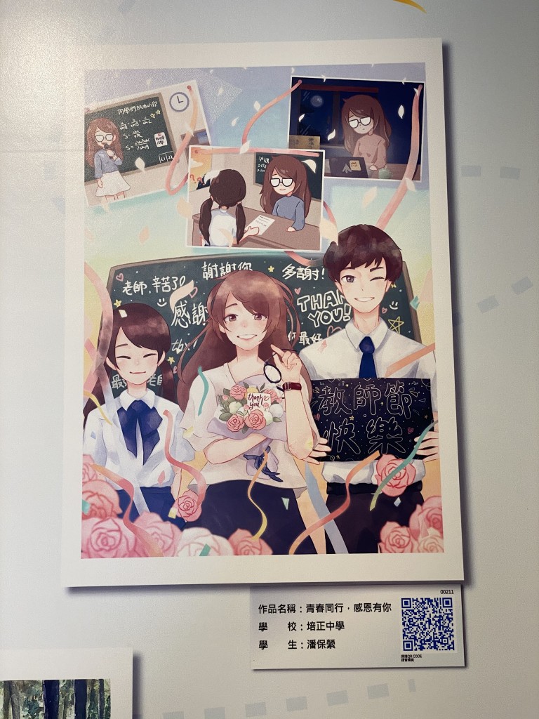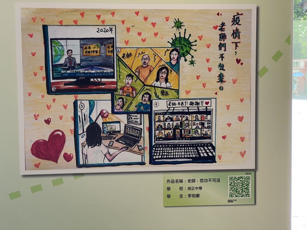 教青局主辦之2020教師節海報及漫畫作品展今天開幕,本校不少學生作品獲選參展。展覽主題是尊師重道,畫作傳達師生互愛關係,趁著教師節傳頌敬師愛師的訊息,展現學生感謝老師之情。該展覽由即日起至9月20日在教育資源中心子瞻廊舉行。